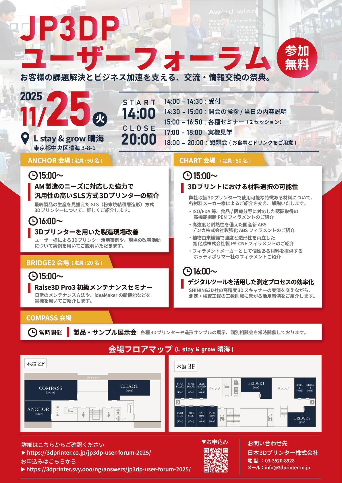 | イベント名: | JP3DP ユーザーフォーラム2025 (特設ページ) |