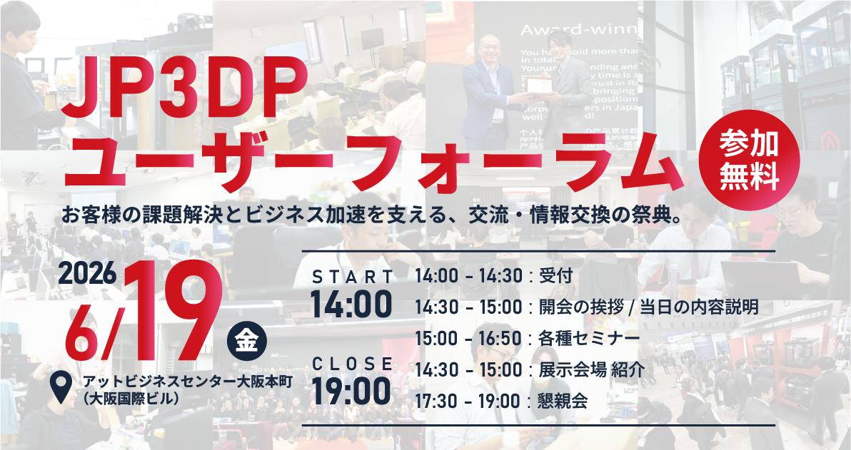 2025年11月に東京で開催し、大変ご好評をいただきました「JP3DP ユーザーフォーラム」を、この度、大阪にて開催する運びとなりました。